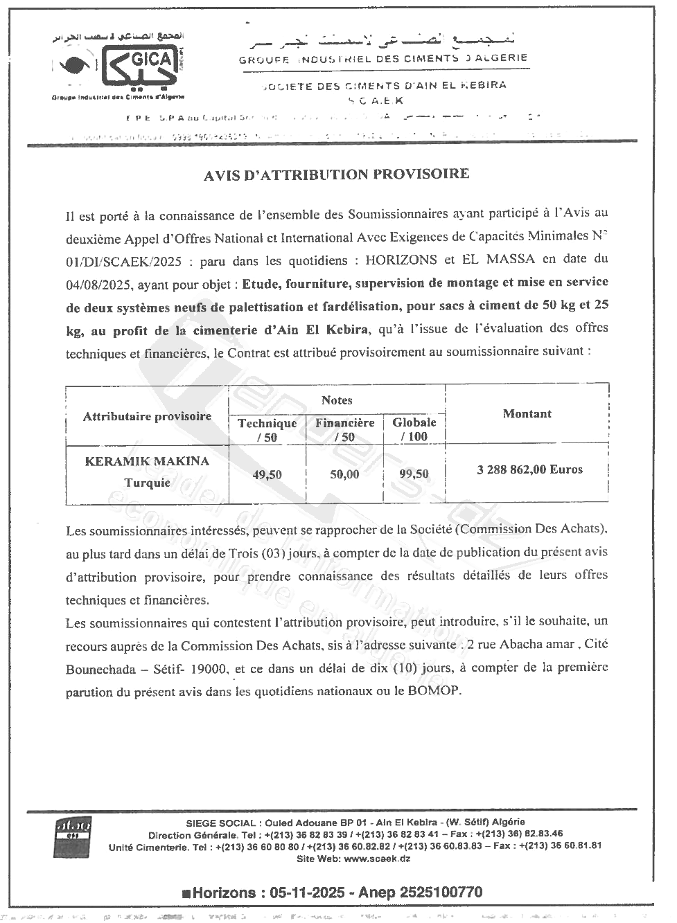 EMAIL : Secretariat.dg@scaek.dz